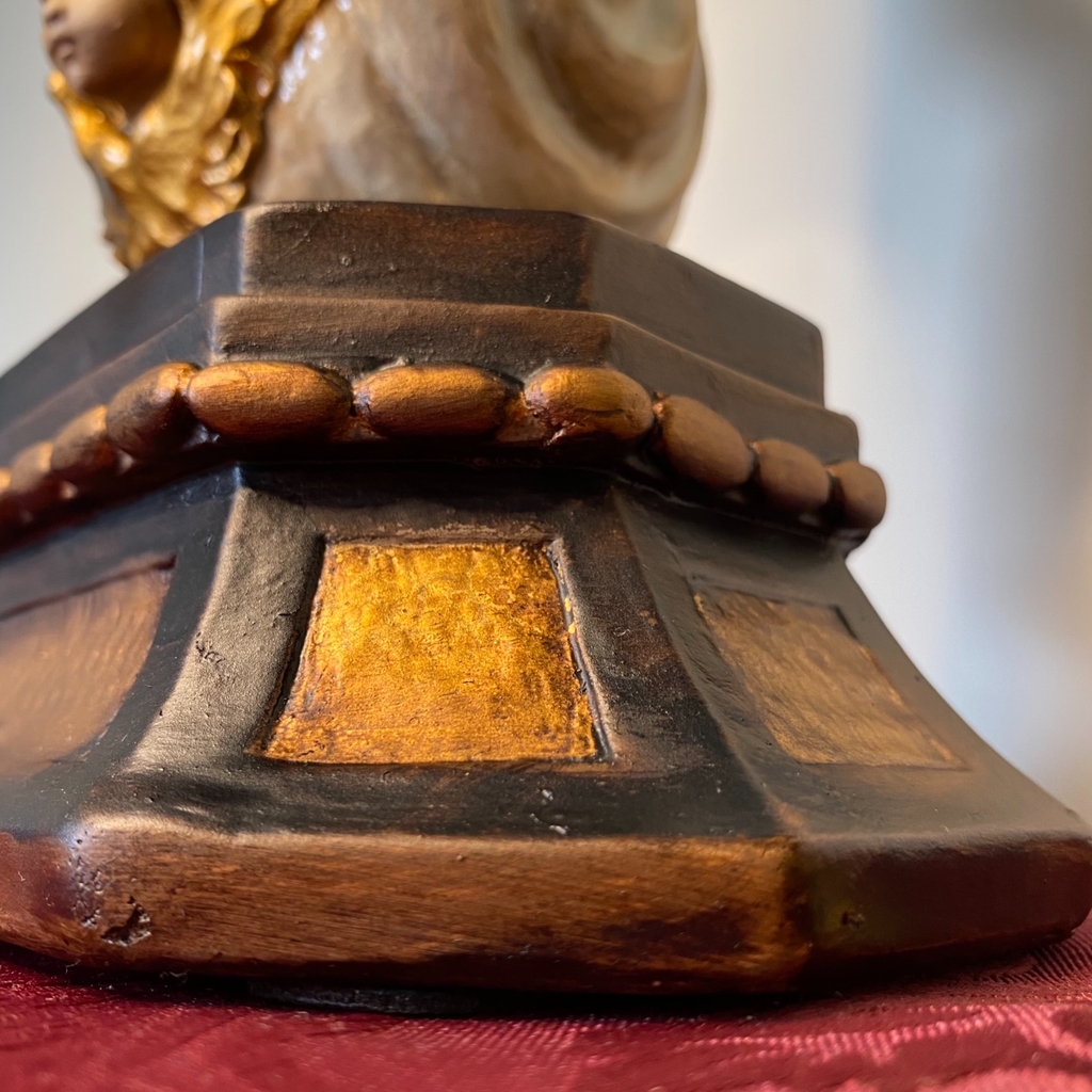 Material: Gesso com pintura e verniz automotivo - A base de poliéster, com proteção elevada.